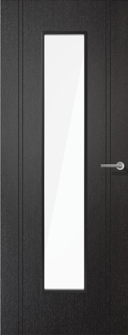 In Pre-finished black, this laminate internal door is ready to hang. Featuring solid black inlays down the edges which enhances the contemporary look. The vertical clear glazed panel will allow natural light to flow throughout your home, making rooms seem brighter.