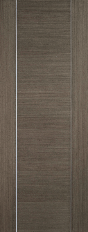 A wonderful pre-finished Chocolate Grey shade is complemented with decorative vertical bars in this Alcaraz door.