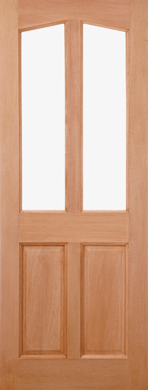 The elegant Richmond door design in hardwood features two raised shaped panels below two unglazed panels with a subtly curved top edge.