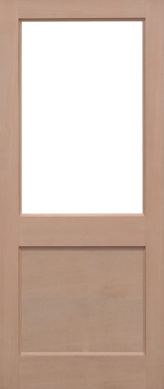 A large unglazed panel is positioned above an inset panel for this 2XG door design, which is crafted from an attractive Hemlock material.