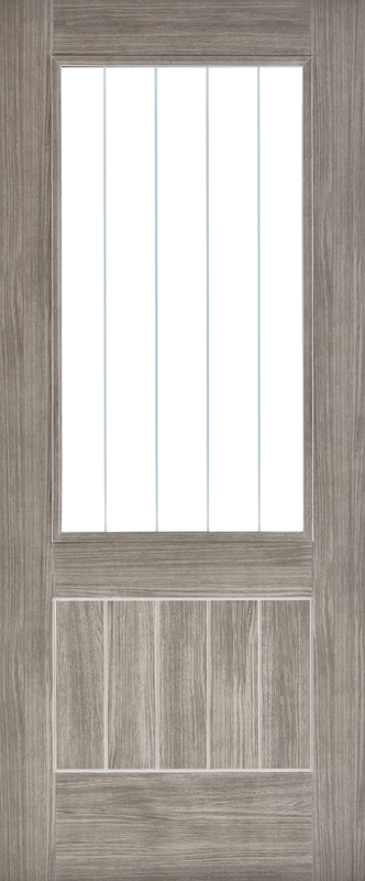 The Mexicano Light Grey Laminated is a timeless favourite with an on-trend twist with the added benefit of a large, clear light with frosted lines. NB: Standard doors supplied semi solid core.