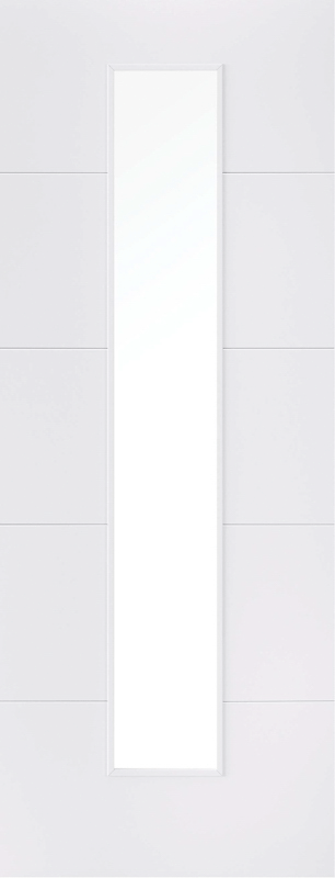 The modern Santandor features five panels in a ladder style design with the added benefit of a long clear glazed panel to let the light flood through your home. With a white primed finish, this door is ready for a final top coat. This is a versatile option for you and the panelled design helps to form a sophisticated, sleek look.